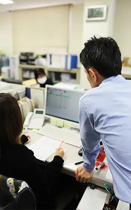 本社採用の場合、どの部署で入社いただいても試用期間中は配送・物流部門で製品に沢山触れ、【高圧継手】を知る期間を設けます。その後、希望した職種にての仕事がスタート!どの部署でも横のつながりが大事になります。